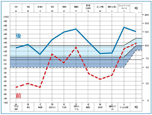 推薦されたコースを行った人は、性格テストとIQテストの結果を示すグラフが明らかに向上しているのがわかります。